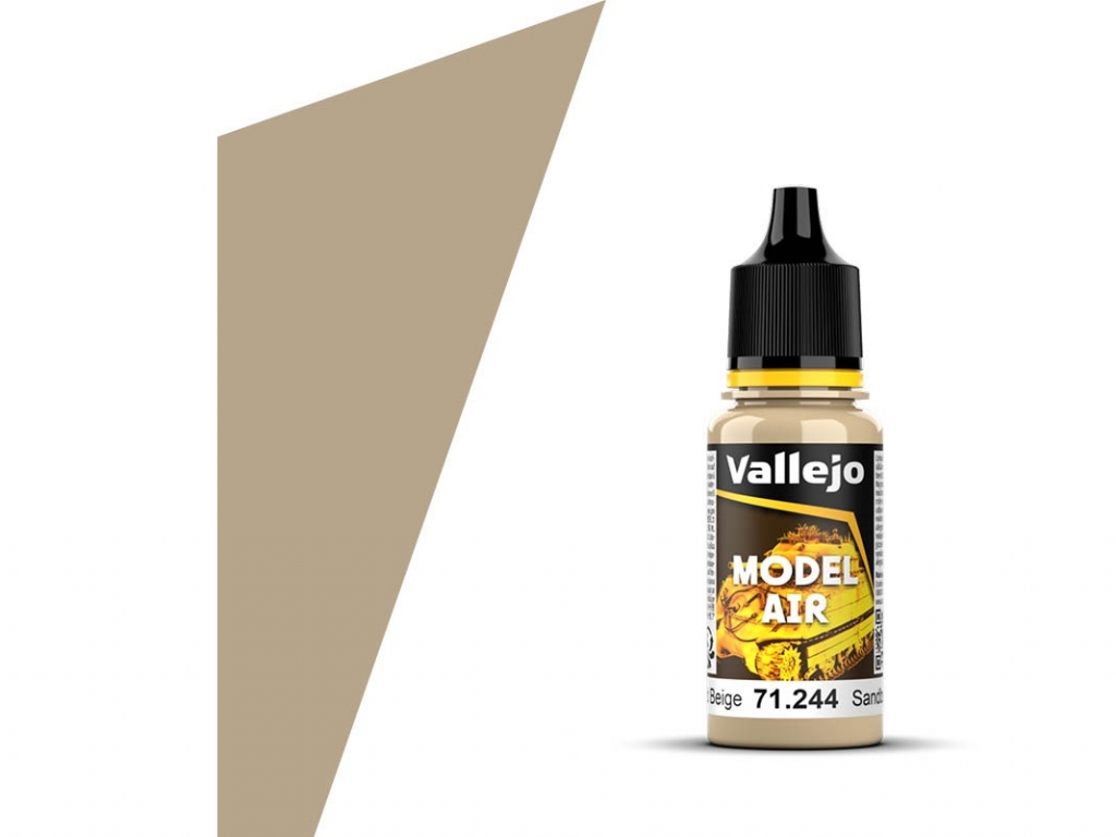 Vallejo Model Air Sand Beige, арт. 71.244 — акриловая краска на водной основе для моделизма и аэрографии, цвет — песочно-бежевый. Жидкая формула разработана специально для целей покраски воздушной кистью даже с маленьким соплом. Нетоксична, практически не имеет запаха, подходит для работы в домашних условиях. Производится компанией Acrylicos Vallejo, S.L. в Барселоне, Испания.