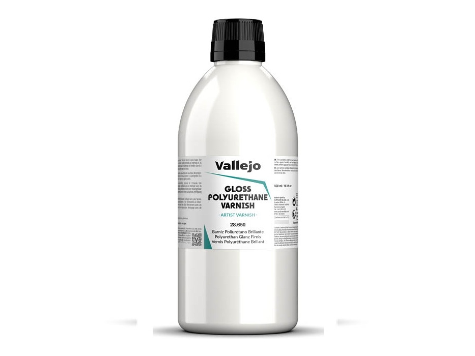 Vallejo Polyurethane Gloss Varnish 28.650 — эластичный полиуретановый глянцевый лак на водной основе. Производится компанией Acrylicos Vallejo, S.L. в Барселоне, Испания. Поставляется в пластиковых бутылках объёмом 500 мл. Наносится на различные поверхности, включая пластик, металл, дерево и другие материалы. Рекомендуется использовать для защиты рисунка от пыли, воды и грязи, а также выцветания. Может применяться и с целью перекрытия промежуточных результатов рисования.